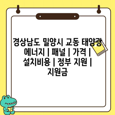✅ 경상남도 밀양시의 태양광 에너지 설치비용과 정부 지원 내역을 자세히 알아보세요.