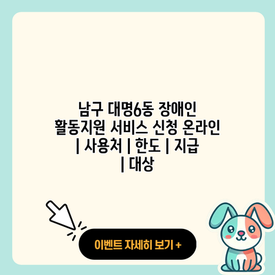 - 거주 지역: 남구 대명6동에 거주하는 장애인의 경우, 지역 내에서 서비스를 받을 수 있어요.