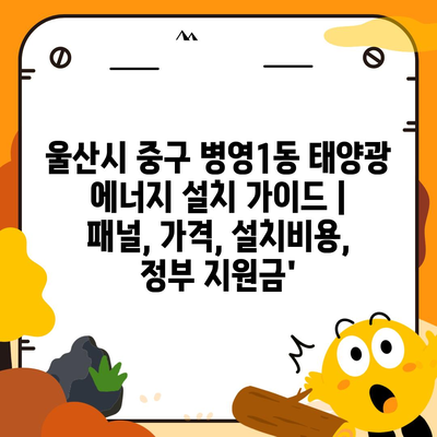 울산시 중구 병영1동 태양광 에너지 설치 가이드 | 패널, 가격, 설치비용, 정부 지원금’