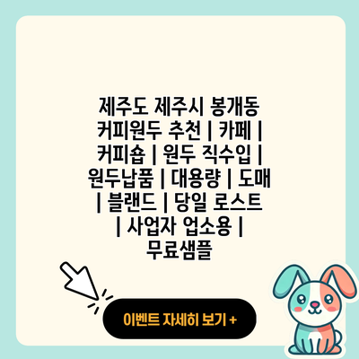 제주도의 아름다운 자연과 함께하는 커피의 세계는 많은 이들에게 커피를 경험하는 특별한 기회를 제공합니다. 특히 제주시 봉개동은 다양한 커피숍과 원두 직수입업체가 밀집해 있어, 커피 애호가들에게는 놓칠 수 없는 곳이기도 합니다. 오늘 이 글에서는 제주도 제주시 봉개동에서 추천하는 커피 원두와 카페 정보를 상세히 알아보겠습니다.