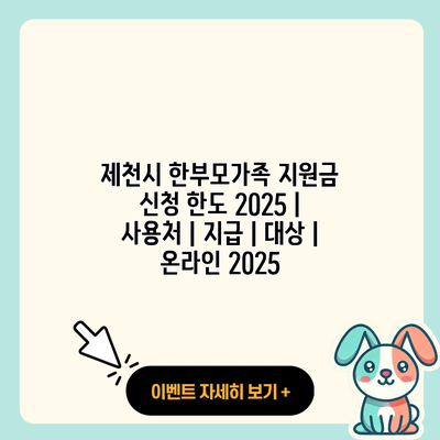 ✅ 제천시 한부모가족 지원금 신청 방법을 상세히 알아보세요.
