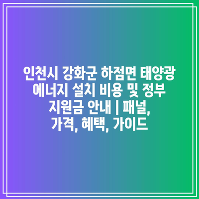 인천시 강화군 하점면 태양광 에너지 설치 비용 및 정부 지원금 안내 | 패널, 가격, 혜택, 가이드