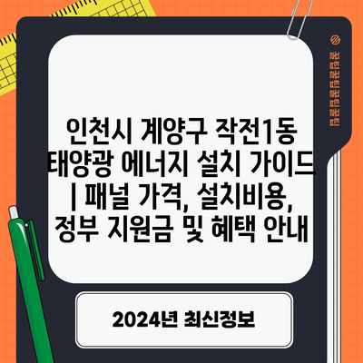 인천시 계양구 작전1동 태양광 에너지 설치 가이드 | 패널 가격, 설치비용, 정부 지원금 및 혜택 안내