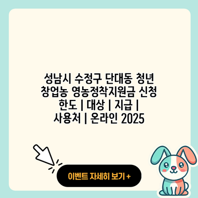 성남시 수정구 단대동 청년 창업농 영농정착지원금 신청 한도 | 대상 | 지급 | 사용처 | 온라인 2025
